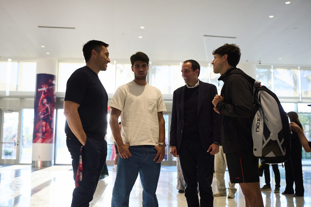 El imponente Miami Beach Convention Cente reunió no sólo a las mejores parejas del circuito, sino también a grandes celebridades, focos mediáticos y un ambiente casi de “Grand Slam” tenístico. Entre el público del Miami Premier Padel P1 2026 destacó entre otros la presencia del número uno del tenis mundial, Carlos Alcaraz, cuya aparición en la grada elevó aún más el estatus del torneo y simbolizó la creciente conexión entre ambos deportes.